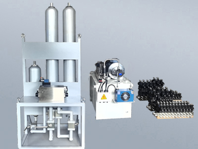 沈陽諾德爾為汽車行業客戶設計生產耐久試驗機液壓站,配備了蓄能器組由2個50L蓄能器和一個25L蓄能器組成,蓄能器組為電液伺服系統提供動力。